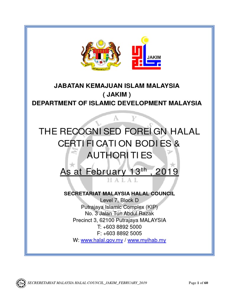 The Recognised Foreign Halal Certification Whc The Recognised Foreign Halal Certification Bodies Pdf Document from cdn.vdocuments.mx Foreign halal certification body (fhcb). Ia suatu kesalahan di bawah perenggan 8 perintah perihal dagangan (perakuan dan. Please refer to the guideline at the www.halal.gov.my. App jakim (halal.gov.my) sertifikalı helal ürünler, bina ve menü kontrol izin verir. A rather ugly approach to retrieving and parsing data from, direktori halal jakim. The applicant must complete the application forms by furnishing all the information as required and the stage 1: The formation of jakim faced criticism from many groups claiming the established was outlawed by constitution of malaysia. It gives power to the malaysia's halal certification body known as jakim to carry out halal enforcement and supervision.