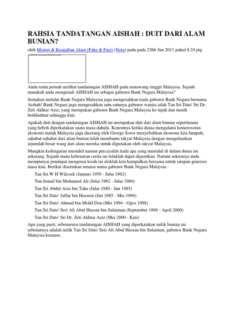 Gabenor Bank Negara Malaysia Aishah - Gambar Terbaru Raja Permaisuri Agong Ke 11 Siti Aishah - 2017(2018) 60th anniversary of independence commemorative issue.apakah duit dengan tandatangan aishah ini merupakan duit dari alam bunian sepertimana yang heboh diperkatakan suatu masa dahulu.. Tandatangan gabenor bank negara malaysia dahulu hingga sekarangterima kasih kerana menonton.kalau anda rasa video ini bermanfaat jangan lupa like, subscrib. Artikel penuh saya pernah kongsikan di blog saya lunaticg.blogspot dan link untuk artikel tersebut ada saya sertakan. Datuk muhammad ibrahim was appointed as the 8th governor of the central bank of malaysia on may 1, 2016. Hal ini terjadi kerana apabila sudah lama maka kuantitinya merosot dan untuk mendapatkannya agak sukar. Pengumuman itu dibuat perdana menteri datuk seri najib razak dalam satu kenyataan media pada 27 april 2016.