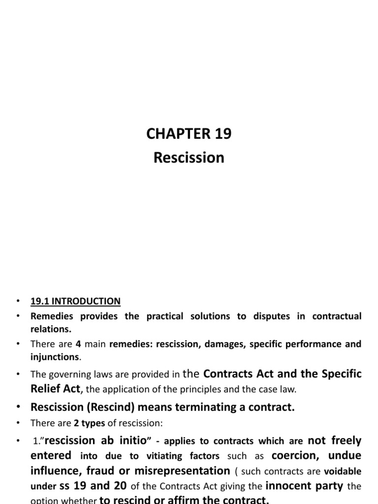 Henrkfnpcrq1mm from image.slidesharecdn.com Rescission under the specific relief act starting from section 34 of the specific relief act, it provides the circumstances which may determine or reject rescission: In malaysia, there are two types of rescission: Affidavits, bills of sale, contracts, llc formation, real estate Uslegalforms.com has been visited by 100k+ users in the past month Trusted by millions · cancel anytime · fast, easy & secure Pdffiller.com has been visited by 1m+ users in the past month Free information and preview, prepared forms for you, trusted by legal professionals Sep 01, 2020 · the remedy of rescission originated from the english court of equity which has been given statutory force in malaysian jurisdiction, i.e.