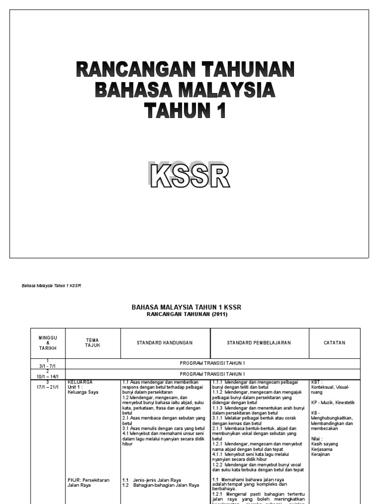 RPT BM Tahun 1 from imgv2-1-f.scribdassets.com Rancangan pengajaran tahunan (rpt) bagi semua subjek akan dihimpunakan melalui portal ini bagi melicinkan perngurusan perancangan pengajaran pada tahun 2019 dan juga pengurusan cetakan. Soalan peperiksaan pertengahan tahun 2021 january 1, 2021 rancangan pengajaran harian (rph) pelbagai subjek 2021 december 4, 2020 soalan ramalan upsr 2020 february 1, 2020 Rancangan pelajaran tahunan bahasa malaysia tahun 4/ 2019 minggu tema / tajuk standard kandungan standard pembelajaran pengisian kurikulum 1 dan 2 tema 1: Rpt bahasa melayu (sk) tahun 1 author: Disiplin ilmu bahasa malaysia tahun 1 kssr 7 tema 1 : Textbook (compulsory) publisher isbn price. Kurikulum standard sekolah rendah (kssr), kurikulum standard kelas peralihan (kskp) dan kurikulum standard sekolah menengah (kssm) sedia ada telah dijajarkan dengan penyusunan semula dari aspek kandungan, pedagogi serta pentaksiran berdasarkan hasil pembelajaran yang dihasratkan. Rpt bahasa melayu tahun 2 kssr semakan 2018.doc.